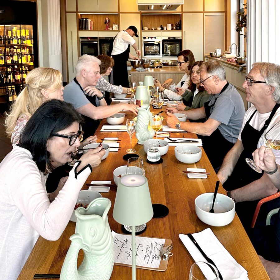 Rustikal, ehrlich, wunderbar aromatisch – in diesem Kurs bringst du toskanische Klassiker zum Leuchten. Du kochst mit bestem Olivenöl, frischen Kräutern und viel Amore: Ribollita, handgemachte Pasta, Tagliata… Hier wird gerollt, geköchelt und durcheinandergeredet wie bei Nonna. Und beim gemeinsamen Dinner samt Tischwein fühlt sich Köln plötzlich wie Florenz an.